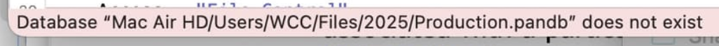 Changing the Volume name to drop the hard drive made that procedure work and it looks like that fixed the problem in other procedures. The open files procedure still doesn’t work but it has code that tests for a server hard drive and loads the file from the server if the client computer has Read Only privileges. I don’t need that feature any more. For now, it looks like I can run my business if I first open my files from the Finder but why would this all of the sudden happen today? M1 Air, OS15.6