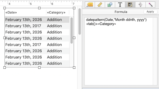 It might be easiest to just show a simplified example of what you are working on. The first thing I’ll slhow is the data sheet with the two fields and the Properties panel for the Date field.